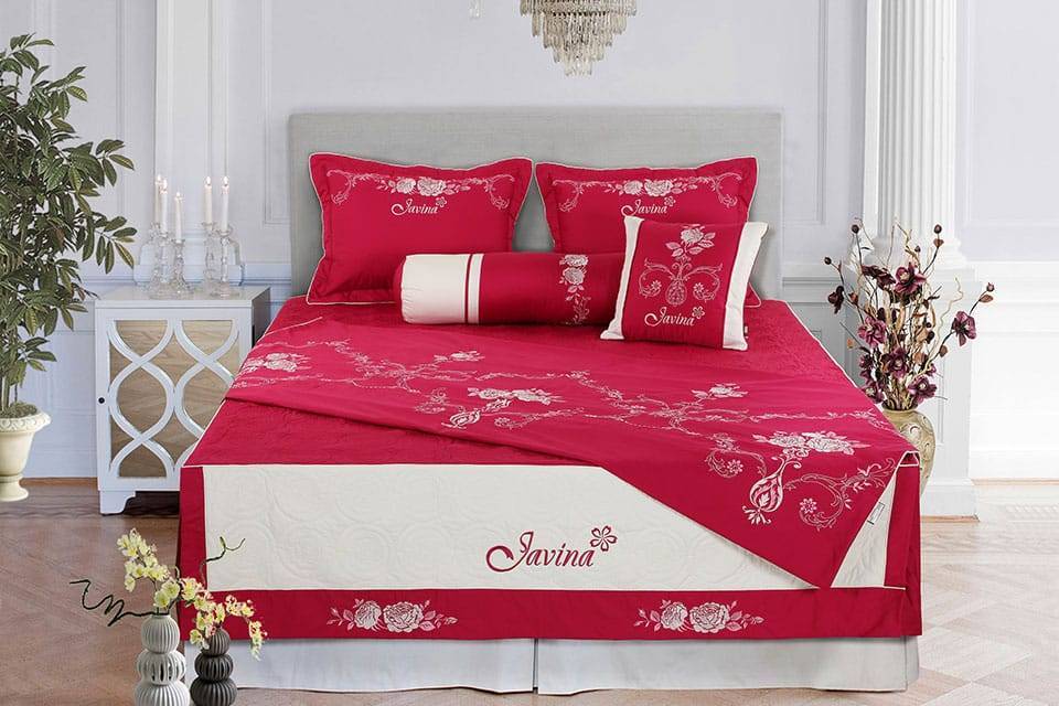 Bộ chăn ga gối ABC AL 903 với thiết kế những đoá hoa hồng nở rộ kết hợp với hoạ tiết hoàng gia luôn là sự kết hợp tuyệt vời giữa sự tinh tế và sang trọng. Trên màu hồng đỏ điểm xuyết những cụm hoa được chắt lọc từng chi tiết thêu sẽ là sự lựa chọn tốt nhất để căn phòng thêm ấm áp cho những đôi uyên ương đang chuẩn bị xây tổ ấm