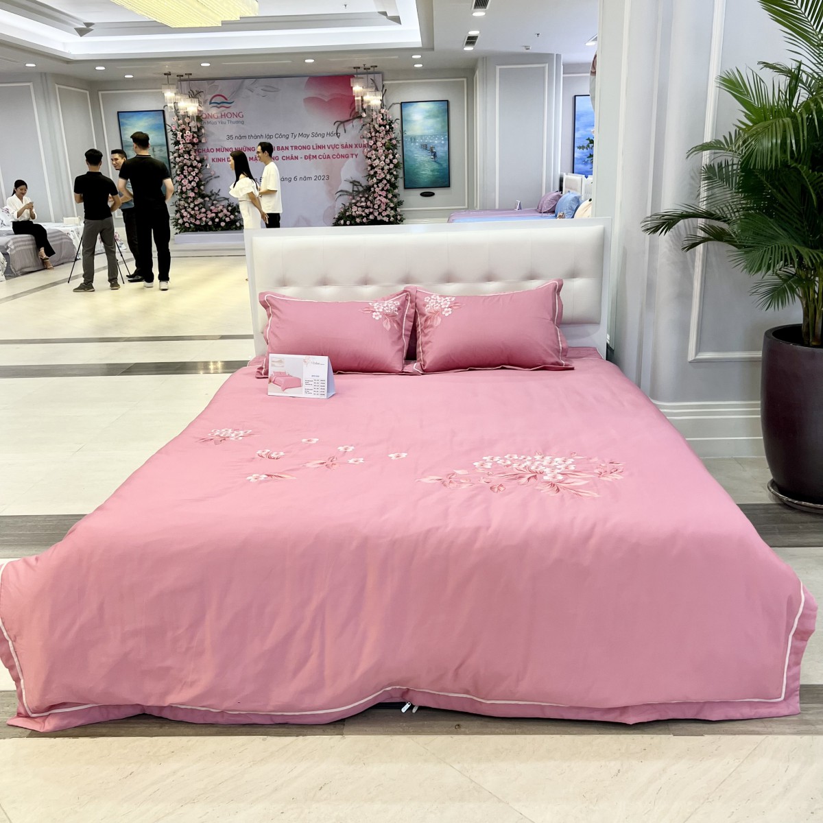 Bộ chăn ga gối sông hồng urban SH_UC23 030 thương hiệu Sông Hồng có thiết kế họa tiết thêu tinh tế trên nên vải màu hồng tươi sáng. SH_UC23 030 nổi bật trong bộ sưu tập chăn ga gối đệm Sông Hồng 2023 – 2024 dòng urban collection