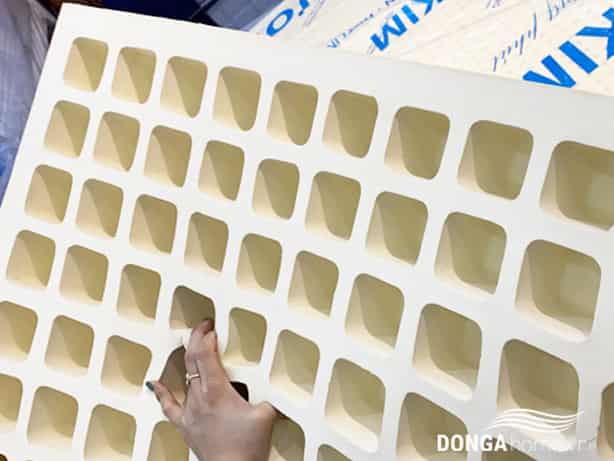 - Bề mặt nệm được thiết kế trên 5.000 lỗ thoáng nhỏ mặt trên. Và hơn 500 lỗ thoáng lớn (hình vuông to) ở mặt dưới cho phép không khí lưu thông tối đa, luôn tạo sự thoáng mát. Không gây hầm nóng, sử dụng cho tất cả các mùa.