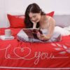 Bộ chăn ga gối Sông Hồng Urban SH_UC21 008 mang lại sự nồng ấm trong tình yêu. Sản phẩm rất phù hợp với phòng cưới, phòng tân gia hướng tới sự sang trọng nhưng vẫn mang săc màu tình yêu nồng cháy. Thiết kế sử dụng tone màu đỏ rực rỡ các họa tiết thêu trái tim lồng trong chữ “I love you” một cách tinh tế mô tả một lời tỏ tình đầy nồng ấm với một tình yêu mãnh liệt.